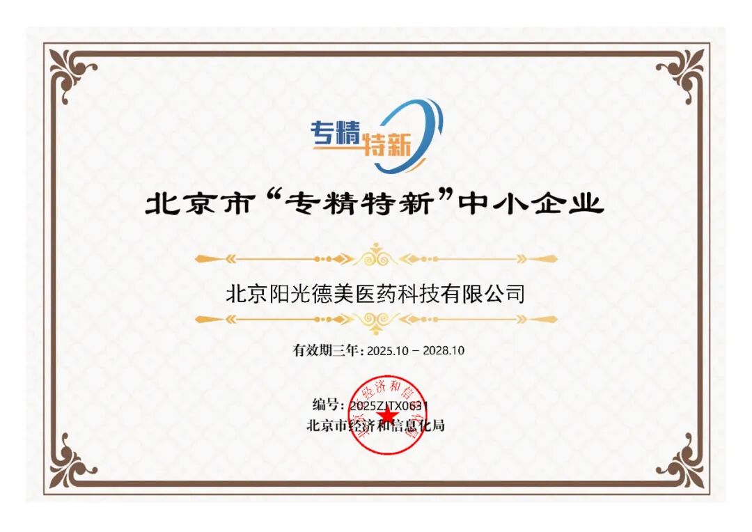 喜讯 | 阳光德美获得北京市“专精特新”中小企业认定